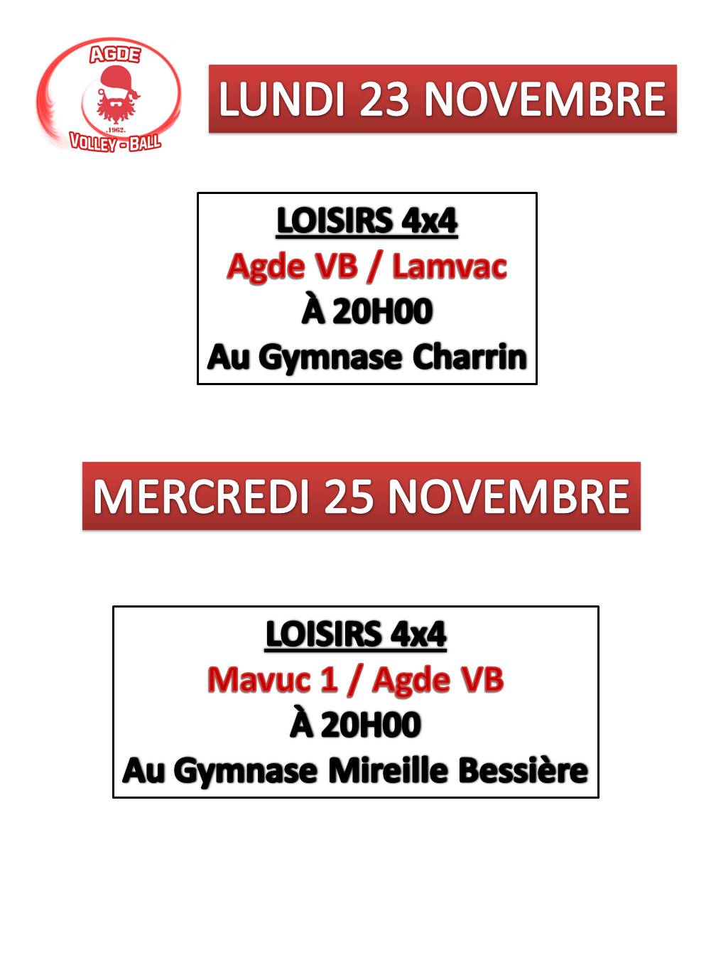 Voici les matchs pour le week-end qui arrive (sous réserve de modification de dernière minute) !!